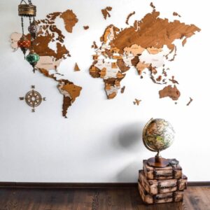 Stylish compositon of craft oak wooden table with chairs, copper watering can and modern floor in beautiful orangery. Template.